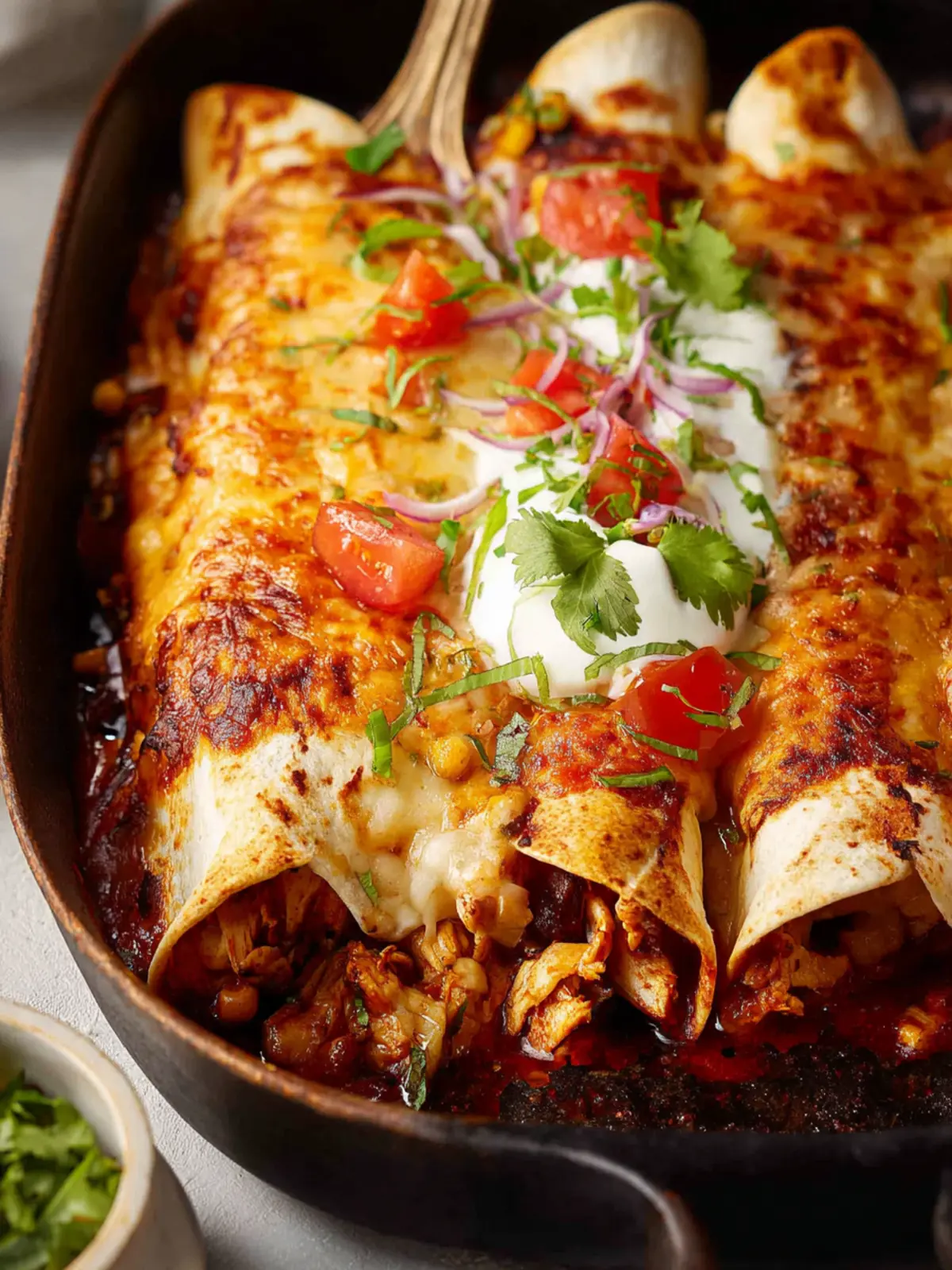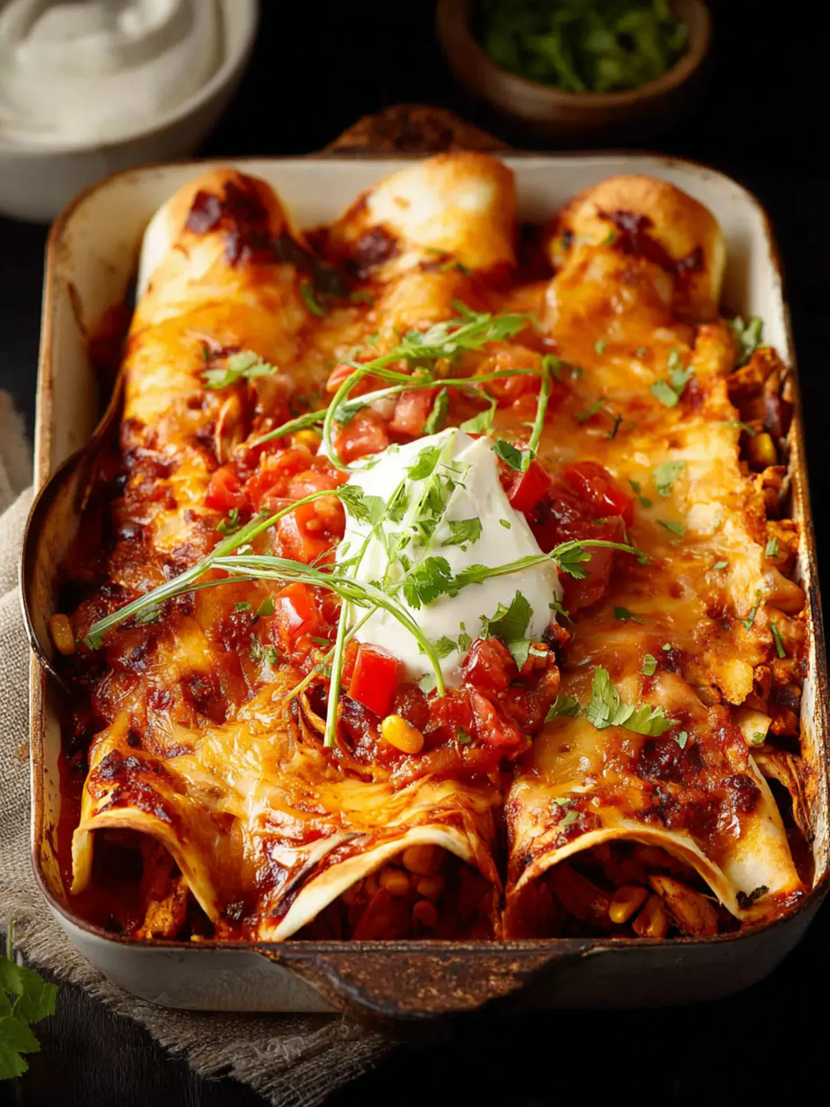 Don’t forget the toppings! Fresh cilantro, diced onions, or a dollop of avocado cream take your enchiladas from delicious to truly divine.