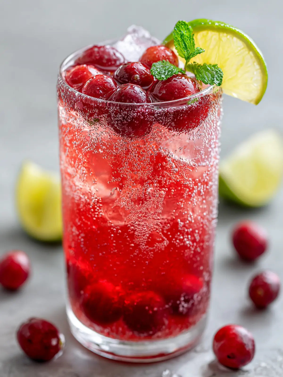 A refreshing fizzy drink combining cranberry juice and sparkling water with a hint of citrus.