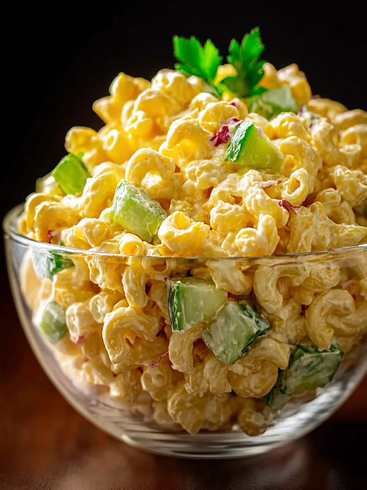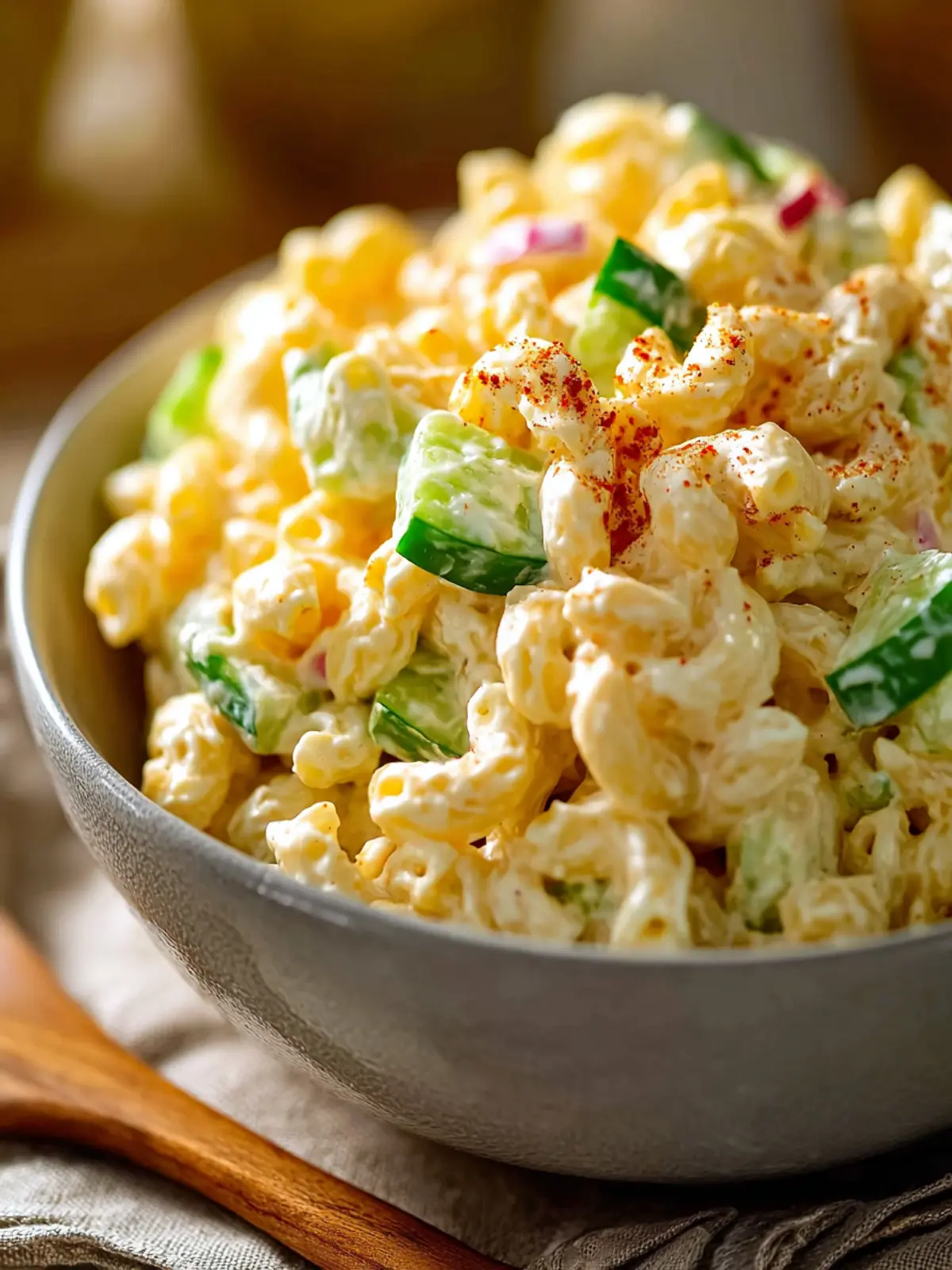 This creamy macaroni salad is a perfect side dish for picnics and gatherings.