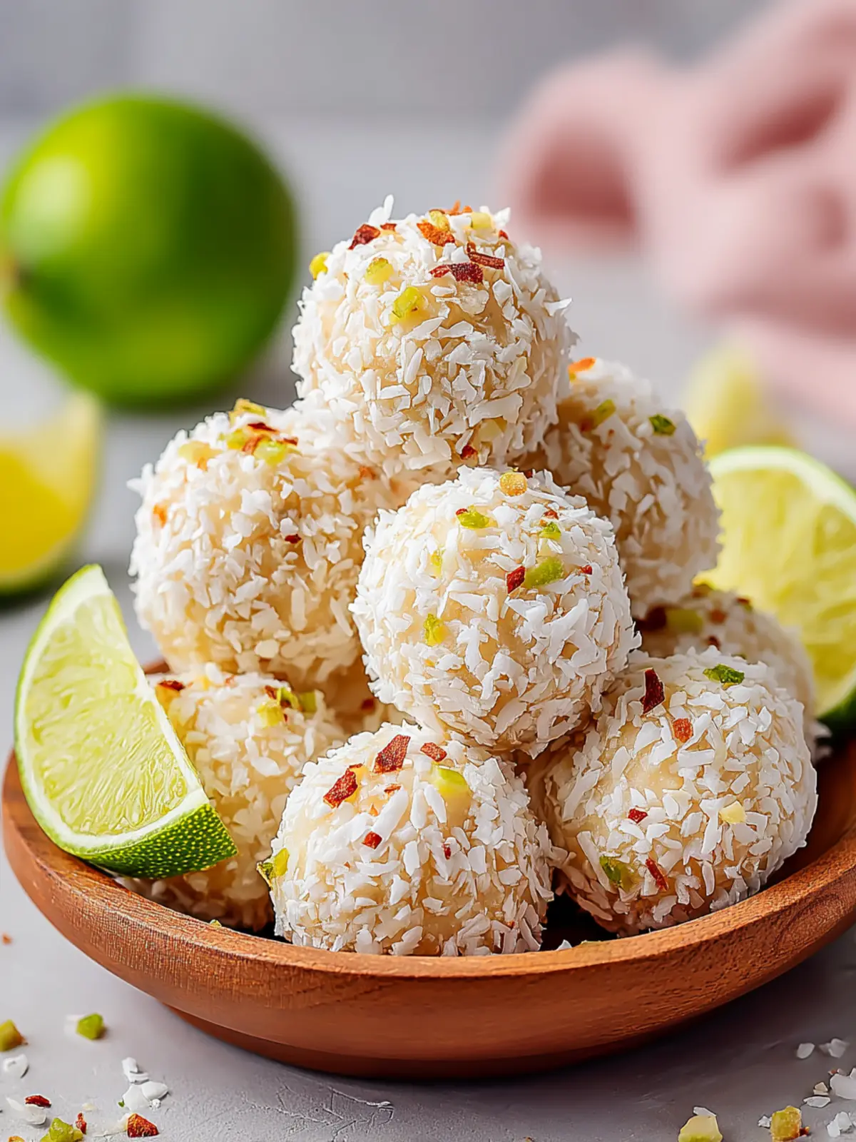 Fruit Fusion: Add dried fruits like cranberries, apricots, or even tropical mango pieces. These fruits pair beautifully with the lime and coconut, giving the bites a burst of sweetness.