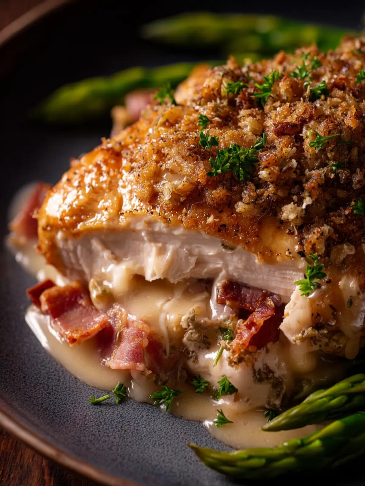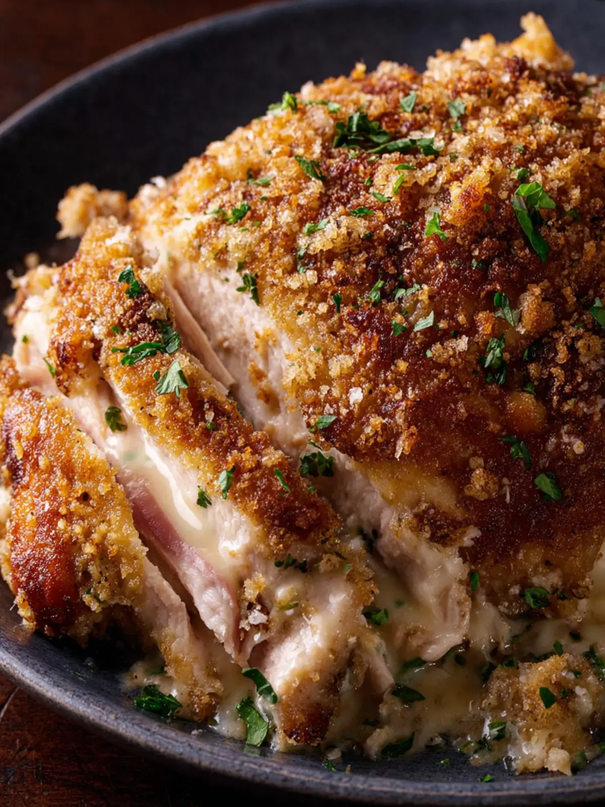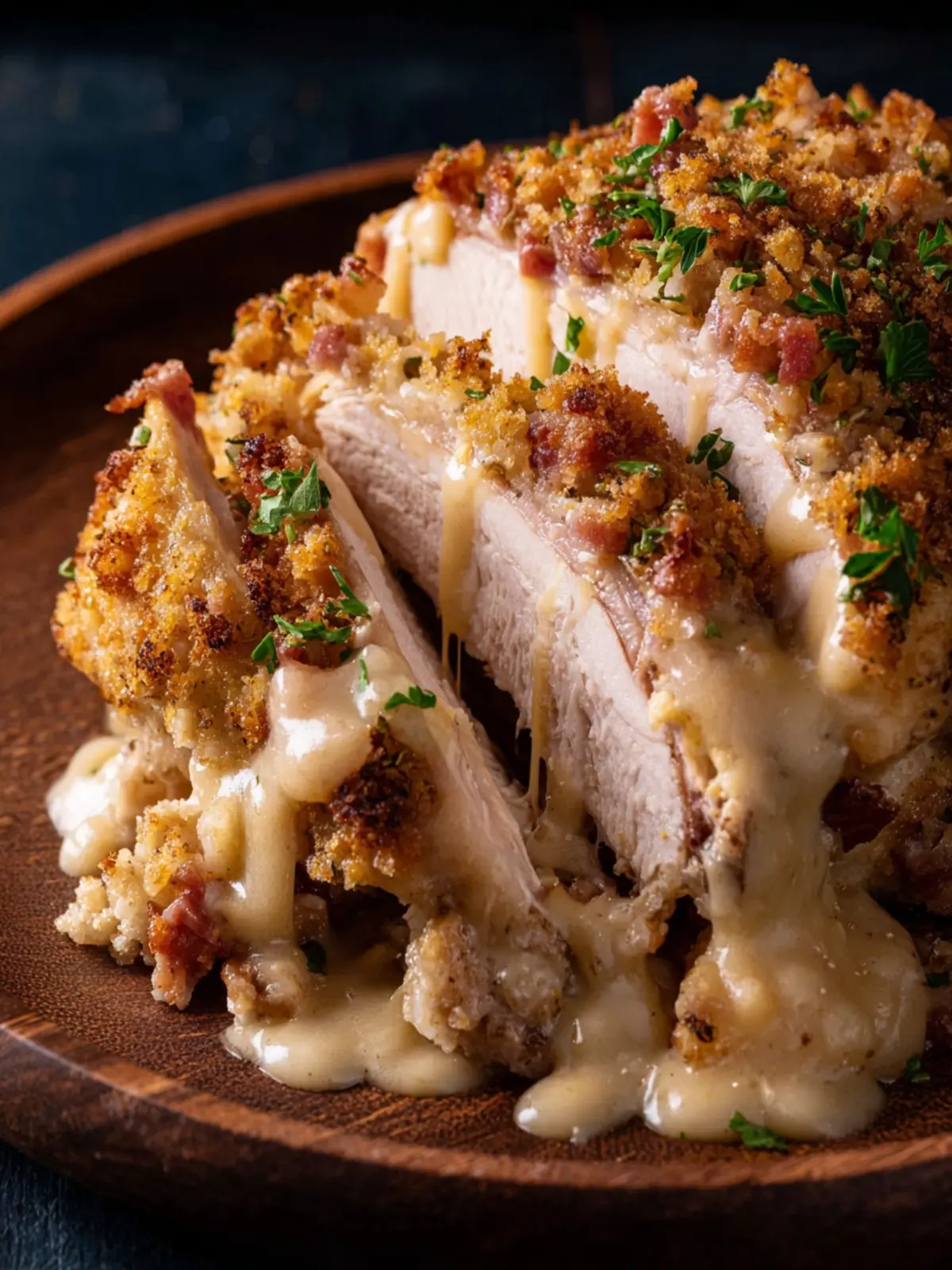 Getting your ingredients ready for this recipe takes about 15 minutes. While you might be tempted to rush, taking the time to properly slice the chicken and layer the ham and cheese will elevate the dish’s overall flavor.